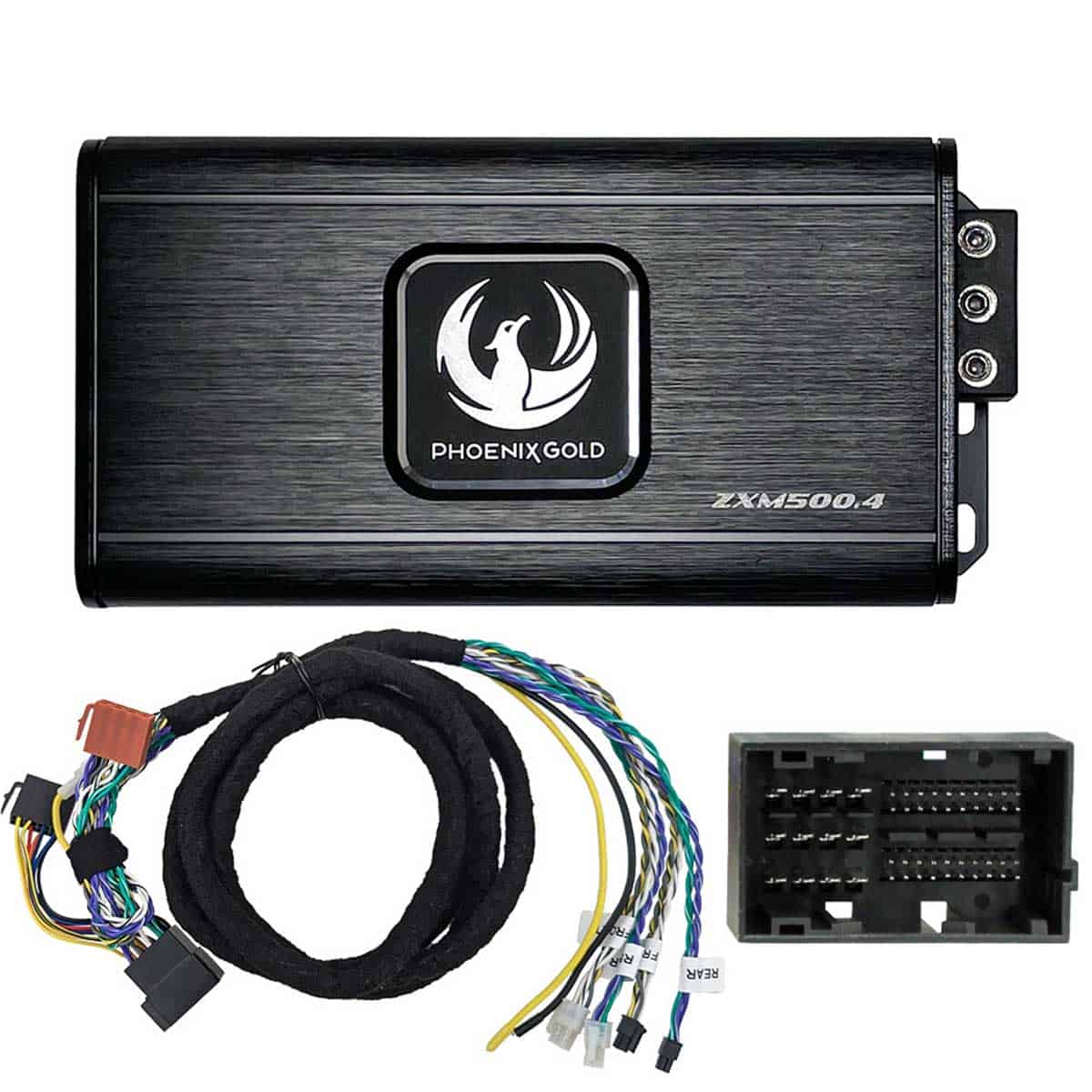 Herzstück des Kits ist der ZXM500.4, ein sehr kompakter 4-Kanal Mini-Verstärker in moderner Class-D-Technik. Trotz seiner kleinen Bauform liefert er eine starke Ausgangsleistung und kann fast überall im Fahrzeug untergebracht werden.
