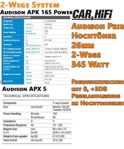 1 × Audison APK165 Power 2-Wege-System für die vorderen Türen